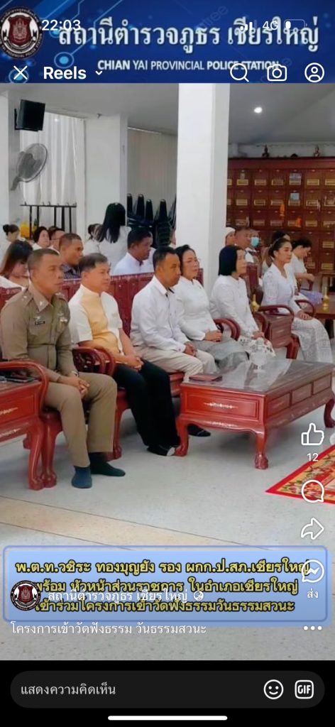 พ.ต.ท.วชิระ ทองบุญยัง รอง ผกก.ป.สภ.เชียรใหญ่ พร้อมหัวหน้าส่วนราชการ ในอำเภอเชียรใหญ่ เข้าร่วมโครงการเข้าวัดฟังธรรมวันธรรมสวนะ