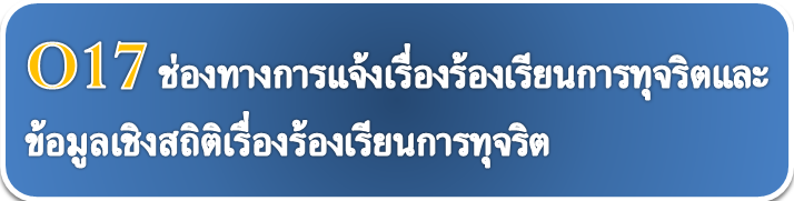 - 17.ช่องทางการแจ้งเรื่องร้องเรียนการทุจริตและข้อมูลเชิงสถิติเรืื่องร้องเรียนการทุจริต