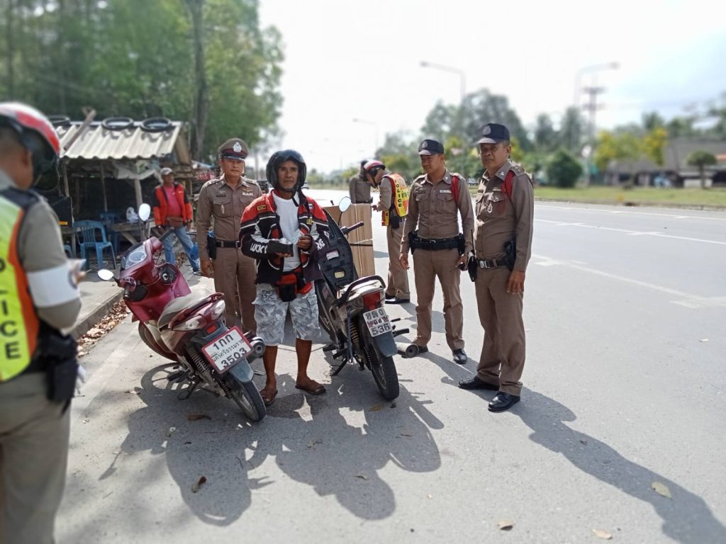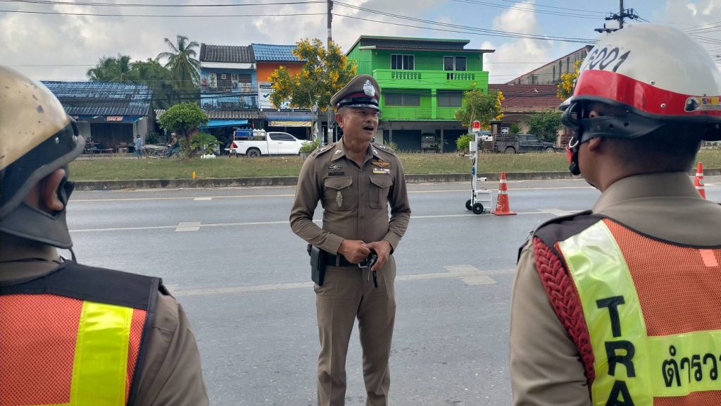 พร้อมด้วย ร.ต.อ.ปราโมทย์ วงศ์อนุรักษ์กุล รอง สวป.สภ.เชียรใหญ่ สายตรวจรถยนต์ จยย. สายตรวจบ่อล้อ และข่ายจราจร ว.4 ว.43 บนถนนสายนครศรีธรรมราช-สงขลา ม.7 ต.แม่เจ้าฯ